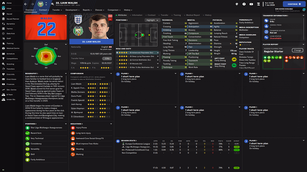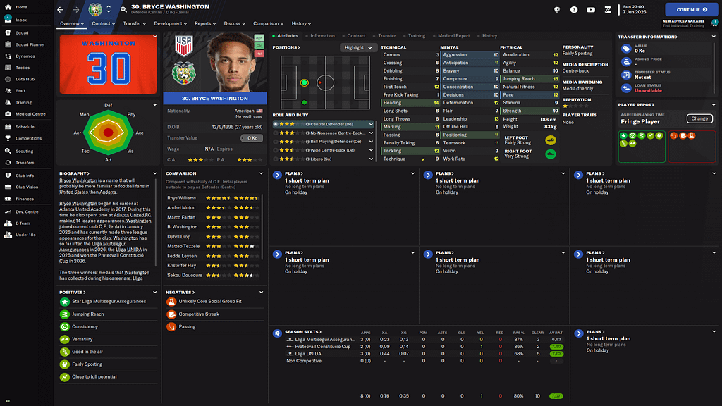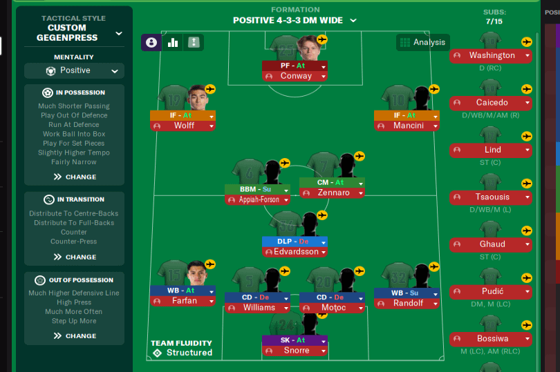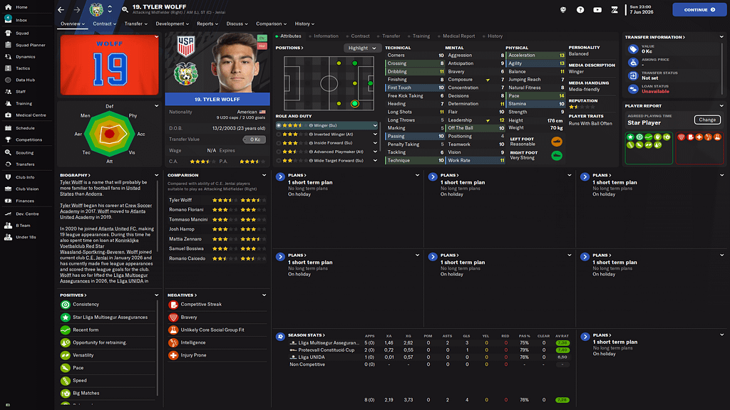Ligové zápasy hrajeme nově i na křídla a tiki-taka s vysokým obraným blokem. Proto jsme potřebovali kvalitní křídlo. Proto přišel tento američan, který mě bude učit se usmívat na majitele a myslet si přitom, že je to uplnej retard. Wolfímu trvalo zapracování do týmu delší dobu a chvíli hrál v b-týmu než jsme ho posunuli do áčka.