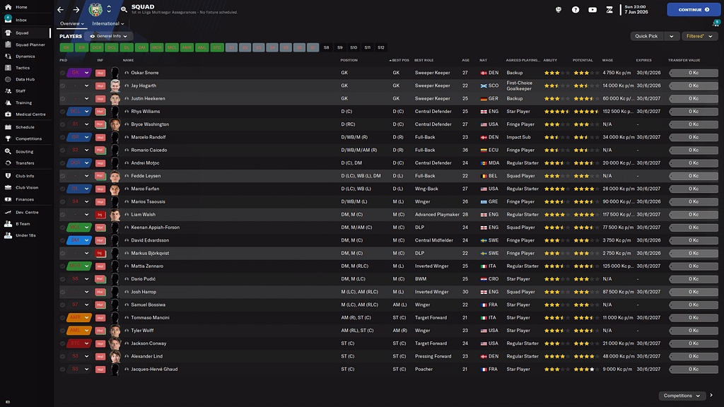 Tady je ukázka týmu po sezóně. Bohužel někteří odejdou kvůli tomu, že buď jsou to zlatokopky a chtějí moc peněz, nebo nebyli spokojeni s herním vytížením a chtějí zdrhnout.