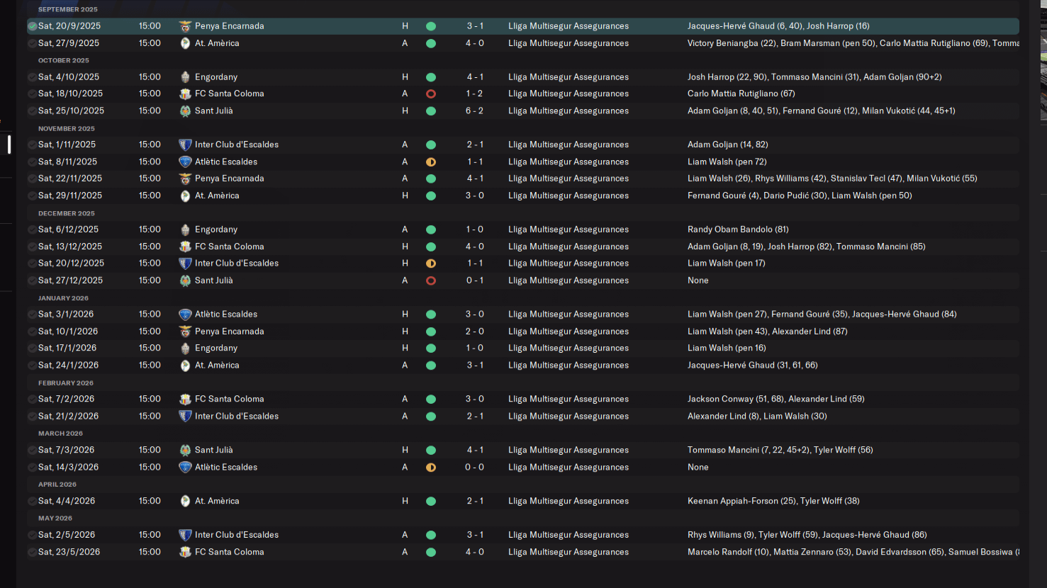 Na začátku soutěže jsme se trochu strachovali, ale nakonec FC Santa Coloma, která byla pár kol i před námi, začala brutálně ztrácet. My se uklidnili a zlepšili výsledky.