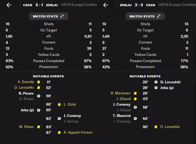 V domácí odvetě jsme opakovali špatný vstup do utkání a během 14 minut jsme prohrávali zase 2:0. Do druhé půle jsme přešli na hru na 3 útočníky a vyplatilo se. V 58. a 64. jsme dali gól zásluhou Conwaye a Manciniho a vyrovnali. Bohužel to bylo vše. Další šance jsme už nedokázali proměnit a skončili jsme v šestnáctifinále. Ale i tak si myslím, že na Andoru dobrý.