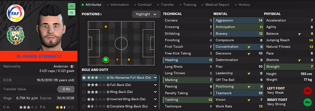 V týmu mám konečně nějakého Andořana, pravý bek přišel z akademie. Sice nestojí za nic, ale já si řekl, že když už tu akademii mám, tak každý rok si nechám aspoň jednoho hráče.