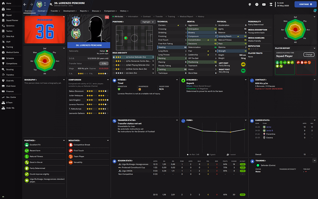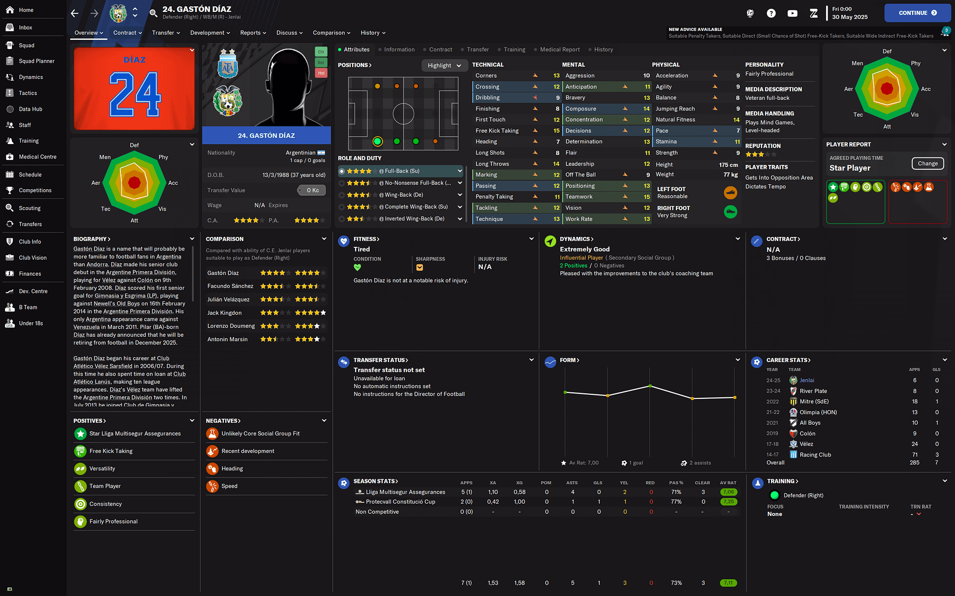 Jeden z mála hráčům, kvůli kterým jsem přizpůsobil taktiku. Jednou za mnou přišel a fňágal, že nechce hrát napadajícího útočníka, ale chce být věž. Tak jsem mu vyhověl a naštěstí to na výsledky nemělo vliv. Všichni hráli na něj dlouhé míč a on si s nimi skvěle poradil, což ale od hráče, který rok působil v akademii Juventusu šlo očekávat.
