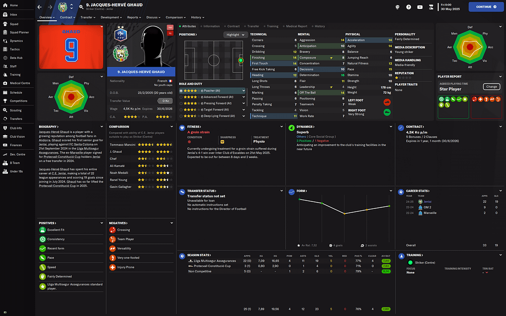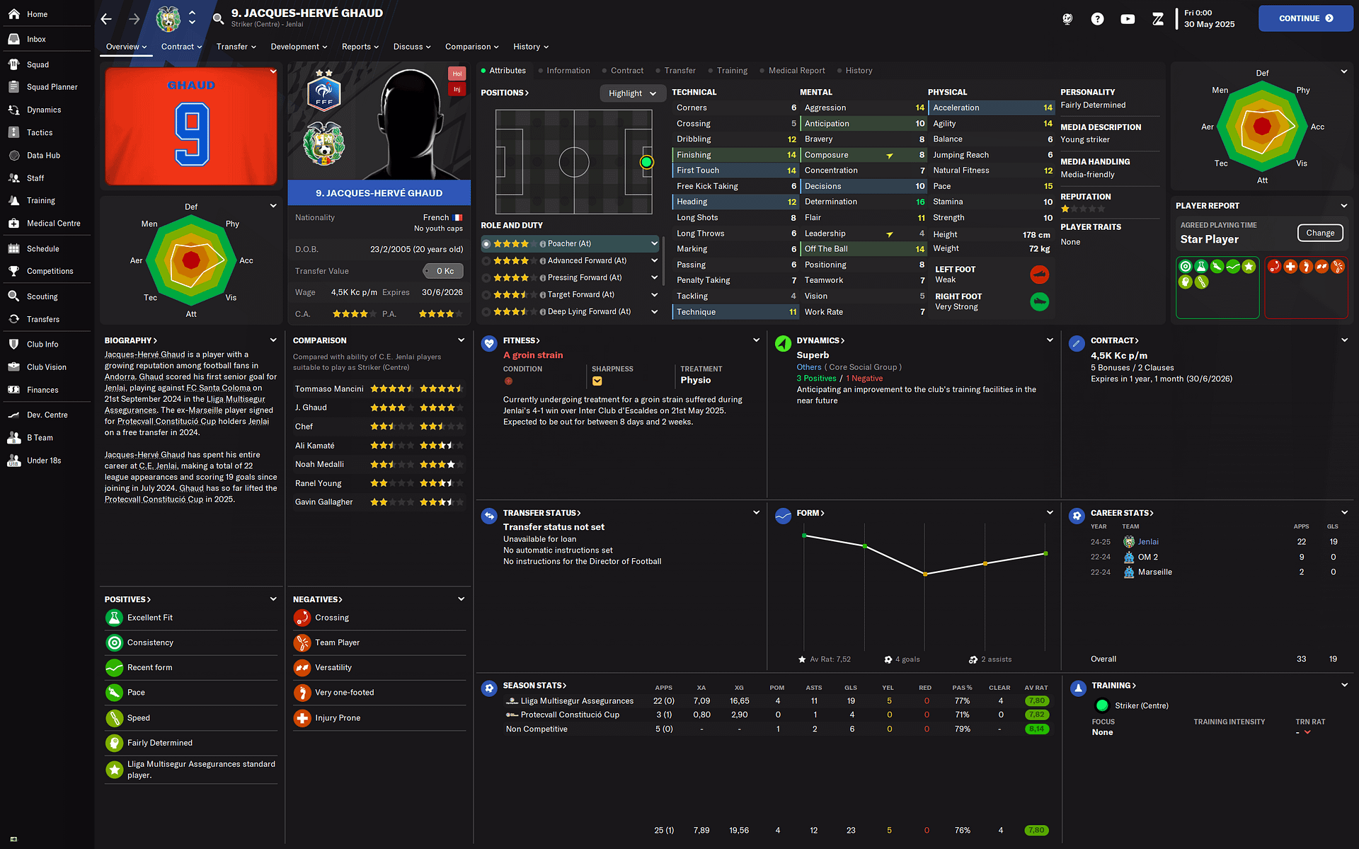 Skvělý útočník, na úroveň androské ligy nesmírně rychlý. Přišel z Marseille a potvrdit to, proč přišel. Dokonce podepsal smlouvu už i na další sezonu, takže s ním můžu dále počítat ve svých plánech.