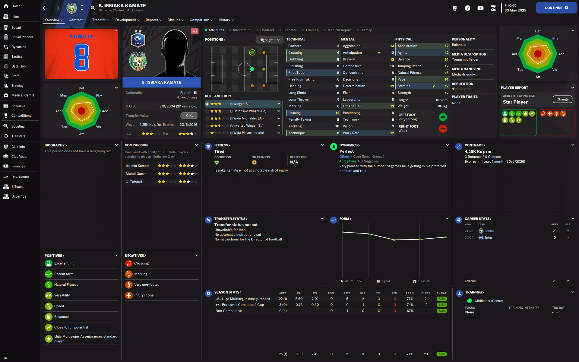 Odchovanec Marseille přišel jako levý záložník a měl se prát o místo s Kamatem. Nakonec ale odehrál značnou část sezony jako levý obránce, jelikož levých obránců jsme moc neměli. Na to, že hrál mimo svoji pozici hrál dobře a pokud bude z jeho strany zájem, tak s ním počítám i pro další sezónu.