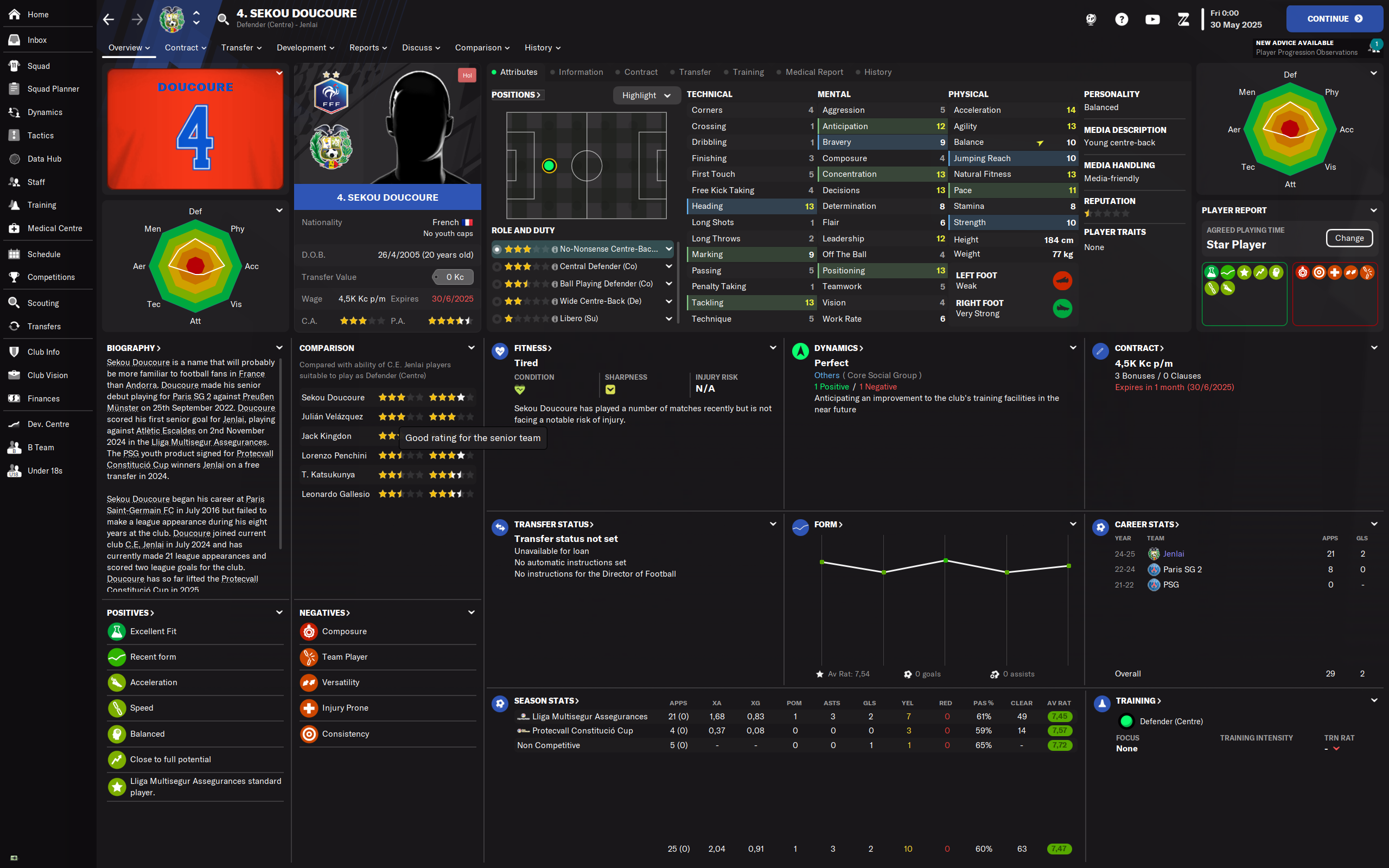 Střední obránce, který hrál v základu od začátku. Hodně pomohl naši defenzivě. Přišel k nám z juniorky PSG, takže kvalitu nějakou mít musel.